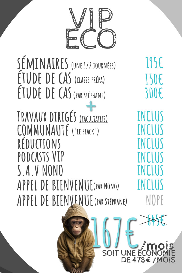 • ☝️1 demi-journée /mois pour les VIPs « éco »